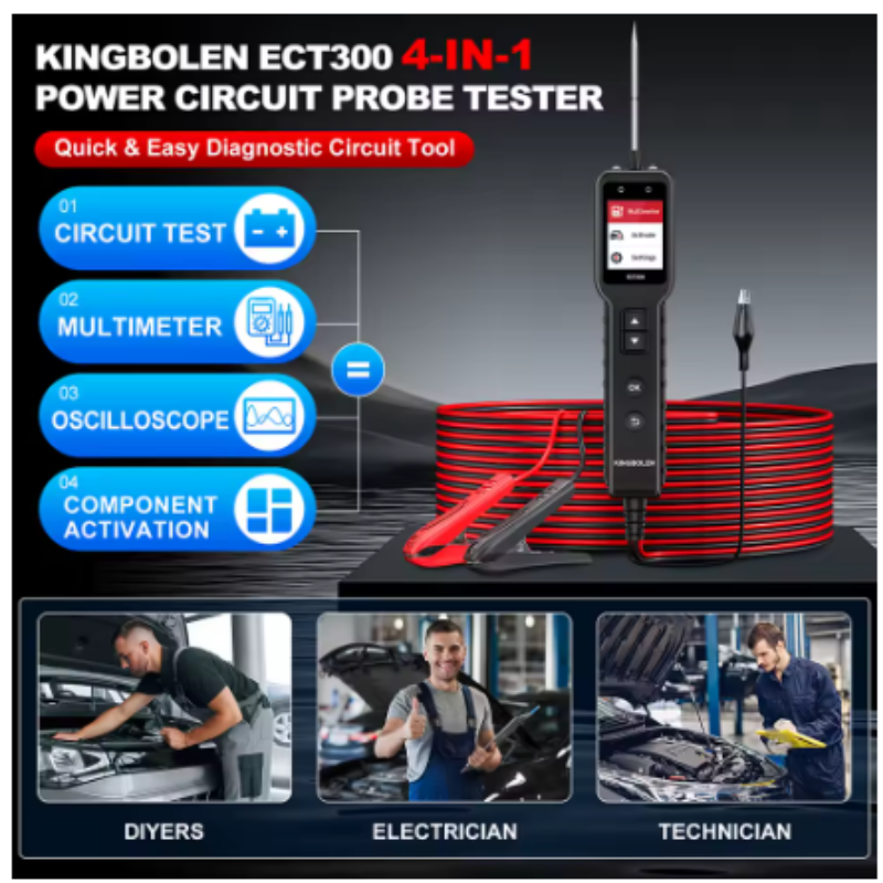 Probador de circuito eléctrico automotriz KINGBOLEN ECT300, probador de sonda de potencia de prueba de voltaje de automóvil de 12 V y 24 V, activación de componentes, prueba de continuidad, probador de luz de remolque, buscador de cortocircuitos, cable de 32 pies, actualización desde ECT200